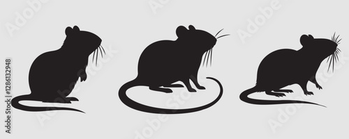 Set of three black gerbil silhouettes in different poses, isolated on a light background