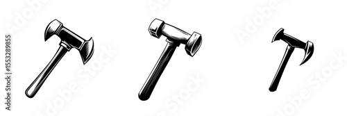 Set of three black icons depicting hammers with different designs on a clean, white background