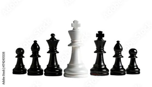Set of Three Conceptual White King Chess Piece Arrangements, isolated on transparent background PNG