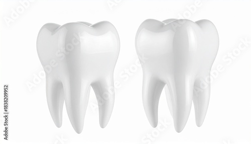 Set of Three Perfect White Human Molar Teeth Isolated on White Background