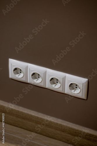 Set of three sockets on the wall. Sockets for electrical appliances.