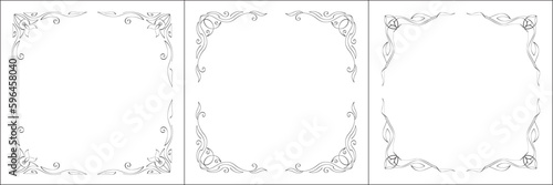 Set of three vector frames. Elegant black and white monochrome ornamental border for greeting cards, banners, invitations. Vector frame for all sizes and formats. Isolated vector illustration.