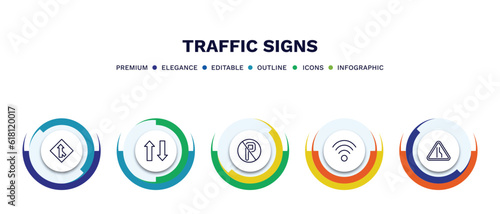set of traffic signs thin line icons. traffic signs outline icons with infographic template. linear icons such as merging, two ways, no parking, , lane vector.