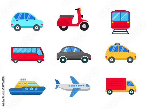 Set of transportation icons with flat style isolated on white background. Simple transportations vector collection