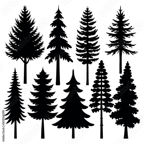 Set of Tree Silhouettes – Isolated Pine and Spruce Tree Illustrations | Winter Christmas EPS 10 Vector Images