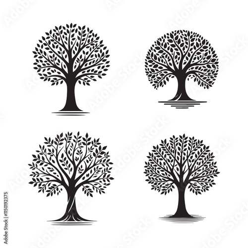 set of tree silhouettes on white background. Vector eps illustration editable icons.