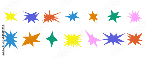 Set of trendy irregular stars and sparkles. Simple doodle abstract elements