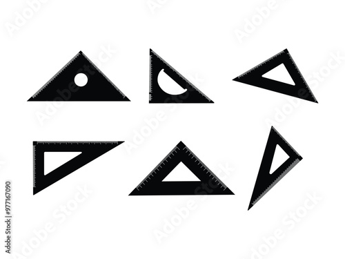 Set of Triangle Ruler Silhouette in various poses isolated on white background