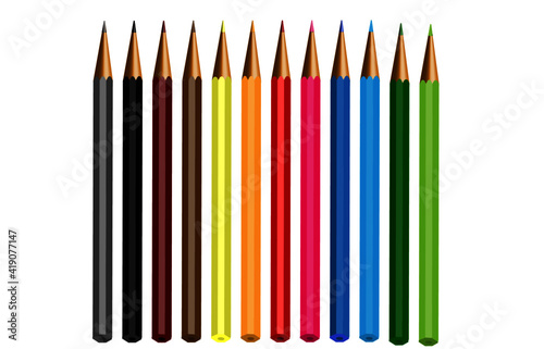 Set of twelve colored pencils. Great joy for children! Vector illustration isolated on white background.