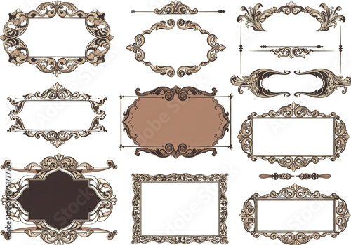 Set of Twelve Ornate Vintage Frames and Borders — Elegant Decorative Collection