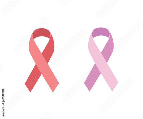 Set of two red ribbons for AIDS awareness month December and Breast Cancer Awareness month October. Vector illustration.