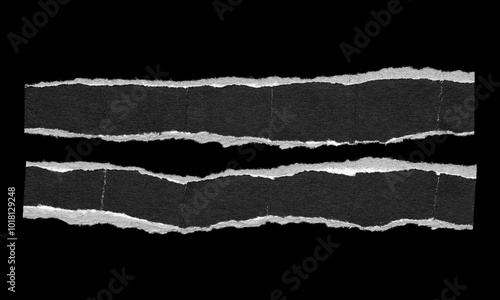 Set of Two Torn Paper Strips with Rough Edges and Empty Space on Black Background for Collage and grunge design