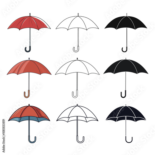 Set of umbrella Vector Illustration, Outline Silhouette, Logo Design