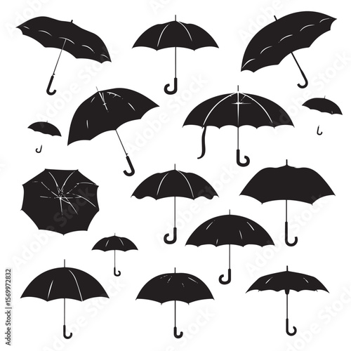 set of umbrellas isolated black vector illustration silhouette , black silhouettes isolated on white background