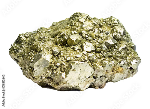 set of Uncut iron pyrite stone isolated on white background.AI GENERATED