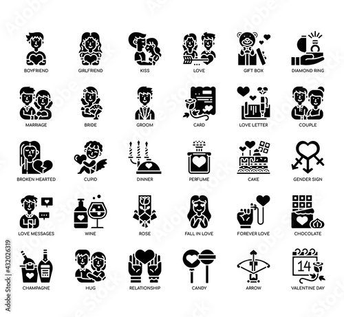 Set of Valentine day thin line and pixel perfect icons for any web and app project.