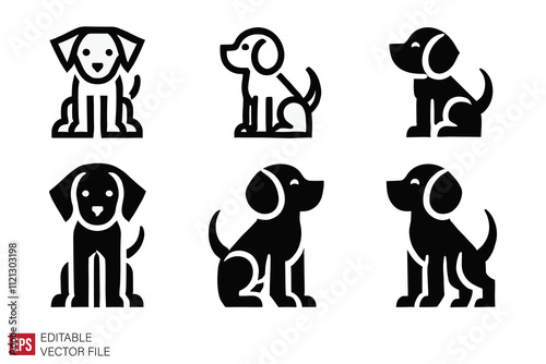 set of various dog puppy Silhouettes Black and White Illustration Designs on White Background