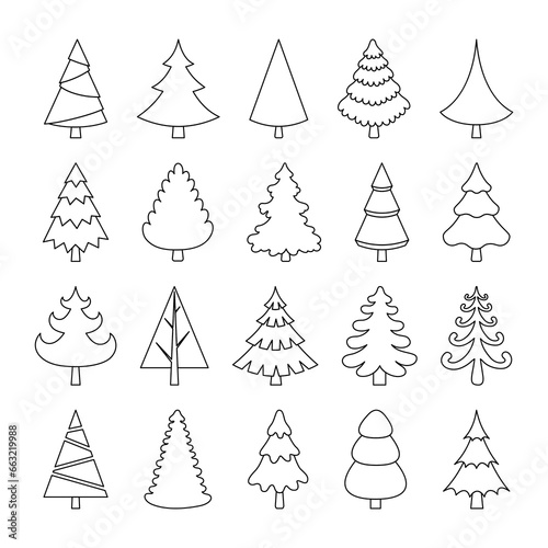 Set of vector christmas trees isolated on white background