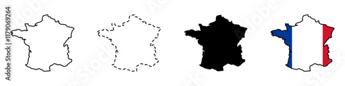 Set of vector maps of France. Mercator projection. Filled and outline.