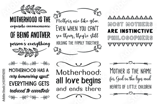 Set of vector quotes for Mother's Day. Calligraphy sayings about mother family and childrens
