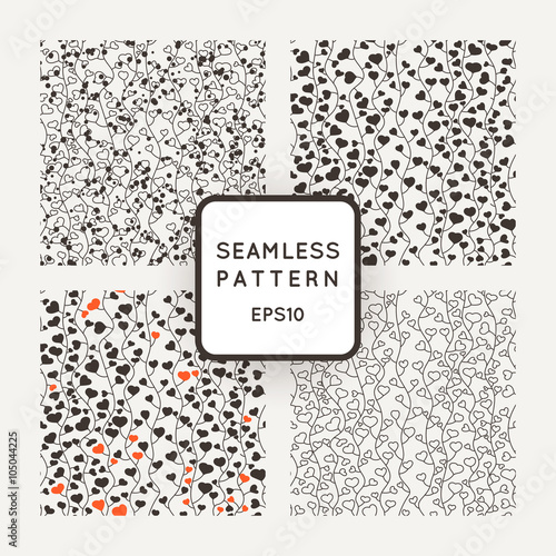 Set of vector seamless patterns of stylized vines with leaves in the form of hearts