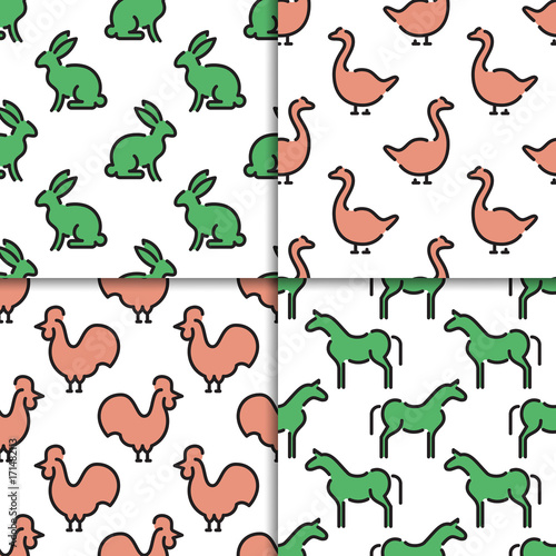 Set of vector seamless patterns with animals and birds. Children vector patterns for printing on fabric in the printing industry and as the background
