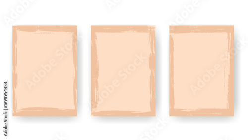 Set of vertical frames with grunge border. Beige neutral template with paint strokes decor. Pastel abstract backgrounds for design, vector graphics