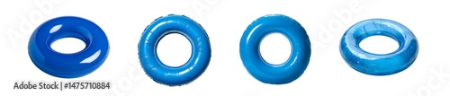 Set of vibrant blue circular shapes isolated on transparent background