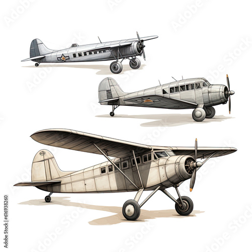 Set of vintage airplane on transparent background