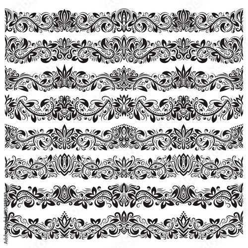 Set of vintage border brushes templates. Baroque floral elements for frames design and page decorations.