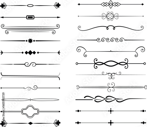 Set of vintage calligraphic swirls, borders, and flourishes for page decoration