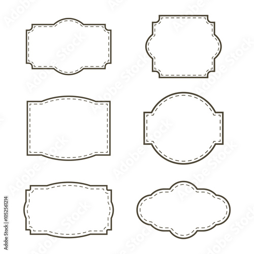 Set of vintage frames. Different shapes, with a dotted line inside. Stickers. On a transparent background. Vector