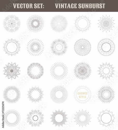 Set of vintage sunburst. Geometric shapes and light ray