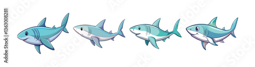 Set of Vivid Iridescent Shark in Dynamic Underwater Art