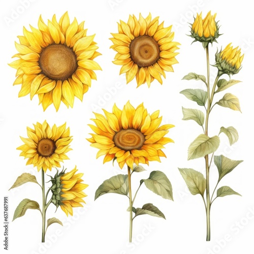 Set of watercolor illustrations of sunflowers. Watercolor floral Botanical Drawing