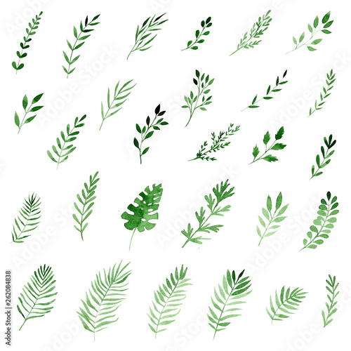 set of watercolor tropical leaves