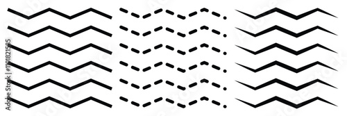 Set of wavy horizontal lines. Regular black and white zigzag chevron pattern, seamless zig zag line texture abstract geometry background.