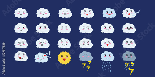 set of weather kawaii character isolated on white background