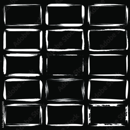 Set of white grunge rectangle frames. Vector illustration. Design element for border frames, tattoo, sign, symbol, web pages, prints, posters, template, monochrome pattern and abstract background