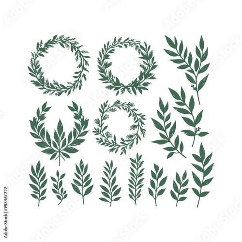 Set of wreaths and branches with leaves Hand drawing vector art illustration