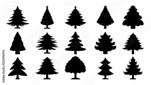 set of xmas tree silhouette vector on tranparent background