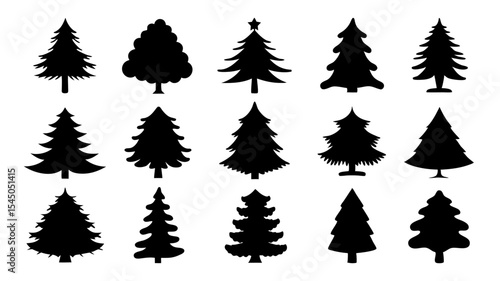 set of xmas tree silhouette vector on tranparent background