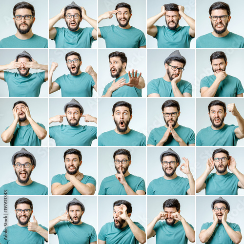 Set of young man's portraits with different emotions