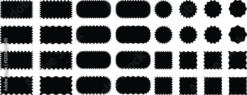 Set of Zigzag and Wavy Geometric Shapes. Vector Rectangle, Circle, Square and Oval Elements with Curve Edge. Zigzag sticker, shapes. Zig Zag Shapes for Stickers, Badges, Posters, Labels and Decoration