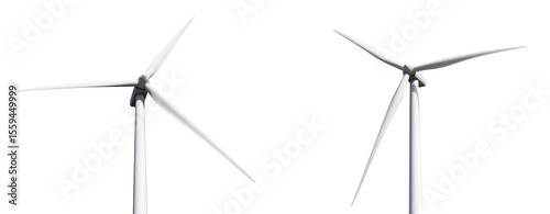 Set ofModern Wind Turbine with Rotating Blades, Isolated PNG