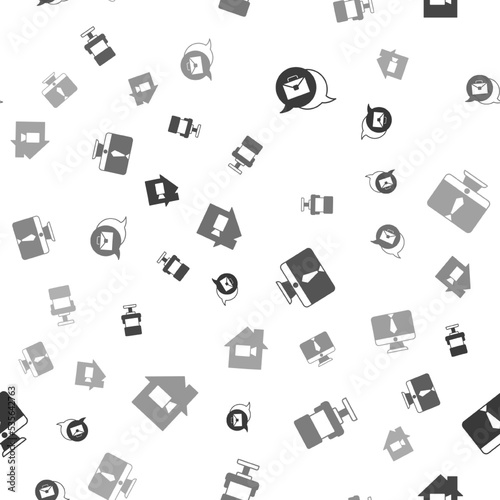 Set Online working, Office chair, Video chat conference and camera home on seamless pattern. Vector