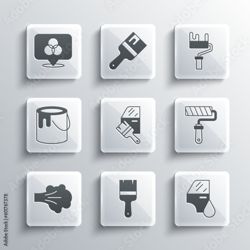 Set Paint brush, Car painting, roller, spray, bucket, RGB and CMYK color mixing and icon. Vector