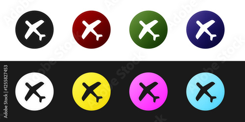 Set Plane icon isolated on black and white background. Flying airplane icon. Airliner sign. Vector