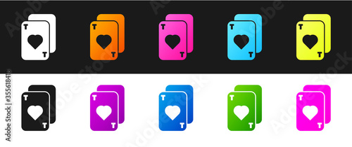 Set Playing cards icon isolated on black and white background. Casino gambling. Vector Illustration.