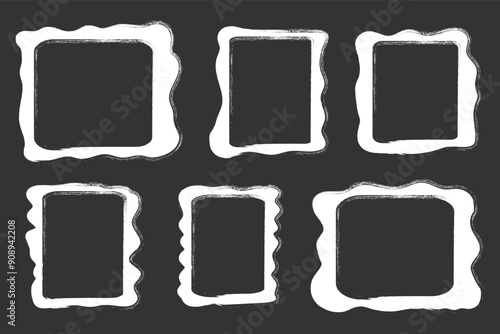 Set rectangle and square paper chalk quote frames, quote text box, empty form with wavy edge. Dilog or title border. Hand drawn speech bubble.